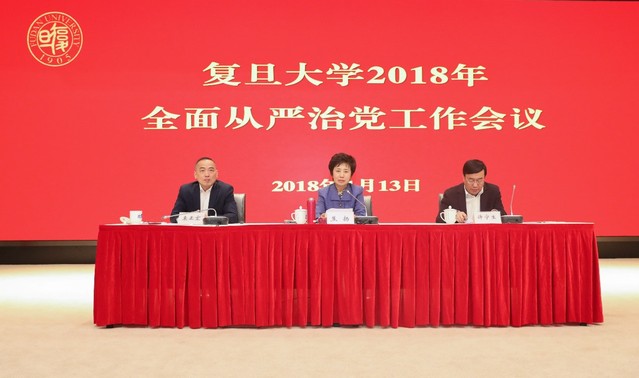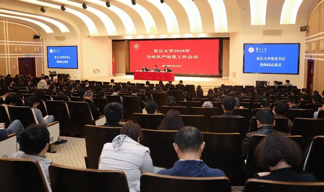 4月13日下午,复旦大学召开2018年全面从严治党工作会议,贯彻落实党的十九大、十九届中央纪委二次全会和上海市十一届纪委二次全会精神以及教育部党组教育系统全面从严治党工作视频会议和上海市教卫党委全面从严治党工作会议各项要求,总结学校2017年党风廉政建设工作,分析研判学校全面从严治党形势,部署安排2018年工作。校党委书记焦扬出席会议并讲话。校党委副书记、校长许宁生主持会议。党委副书记、纪委书记袁正宏作党风廉政建设和党内监督工作报告。