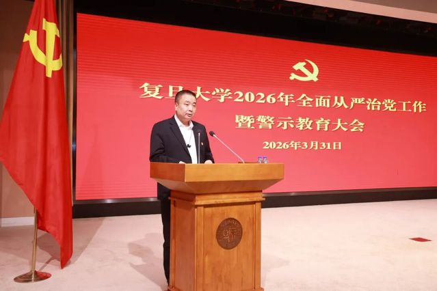 今天(3月31日)下午,复旦大学召开2026年全面从严治党工作暨警示教育大会。校党委书记裘新讲话,部署学校全面从严治党年度工作。校长金力主持会议。教育部高校党建工作联络员、上海外国语大学党委原书记姜锋到会指导。校党委副书记、纪委书记、国家监委驻复旦大学监察专员林立涛通报有关情况,布置纪检监察巡视年度重点工作。